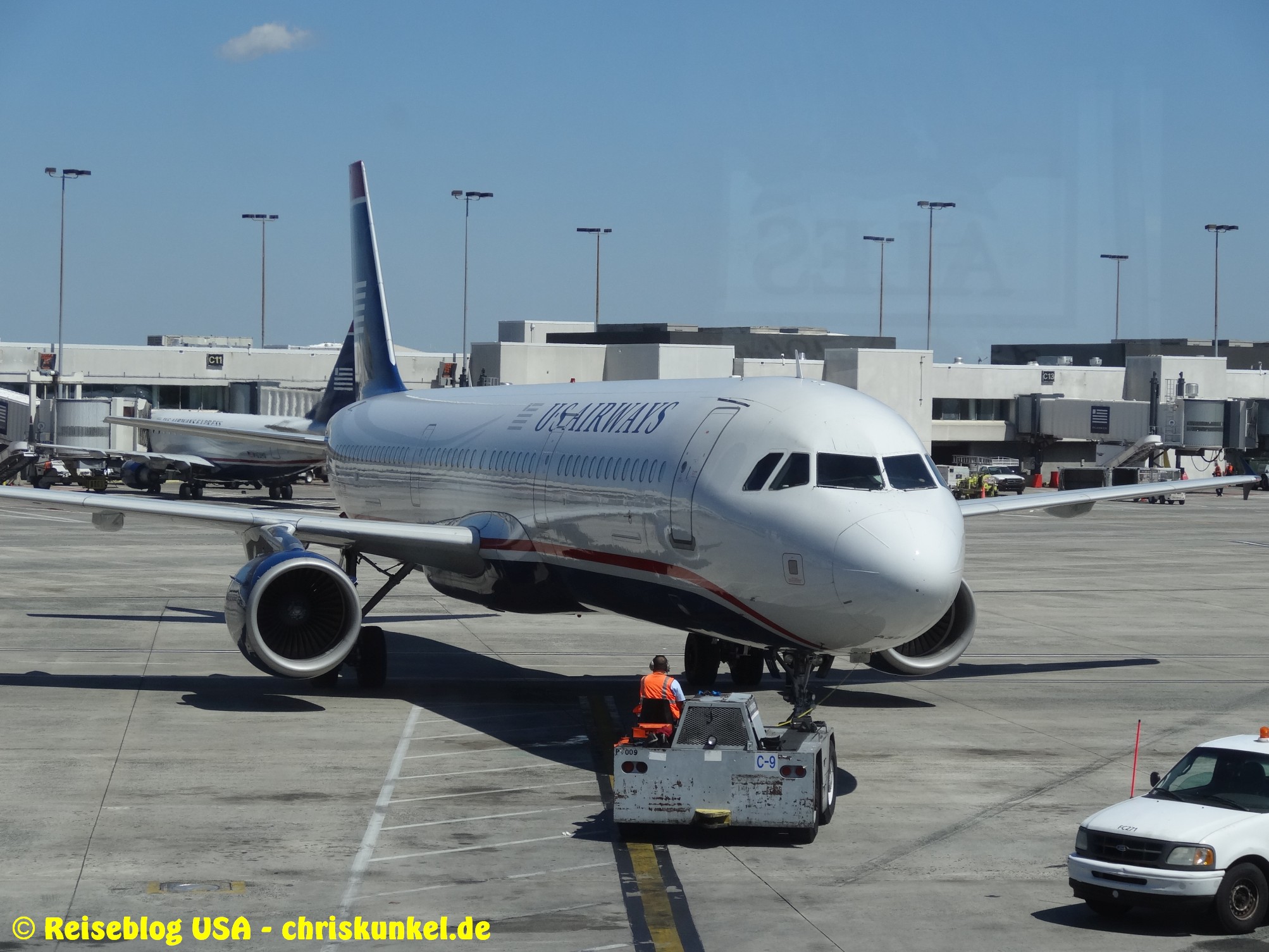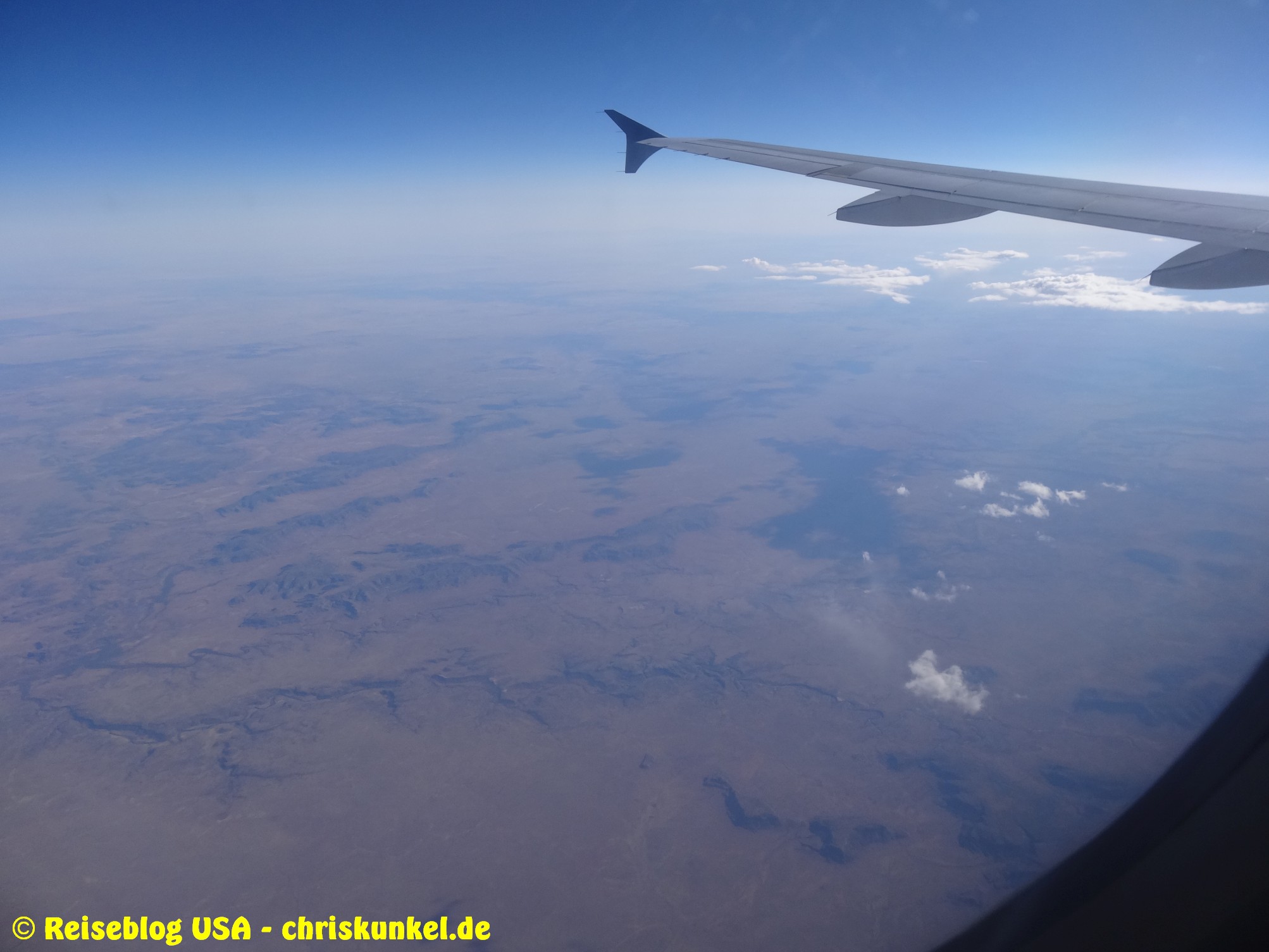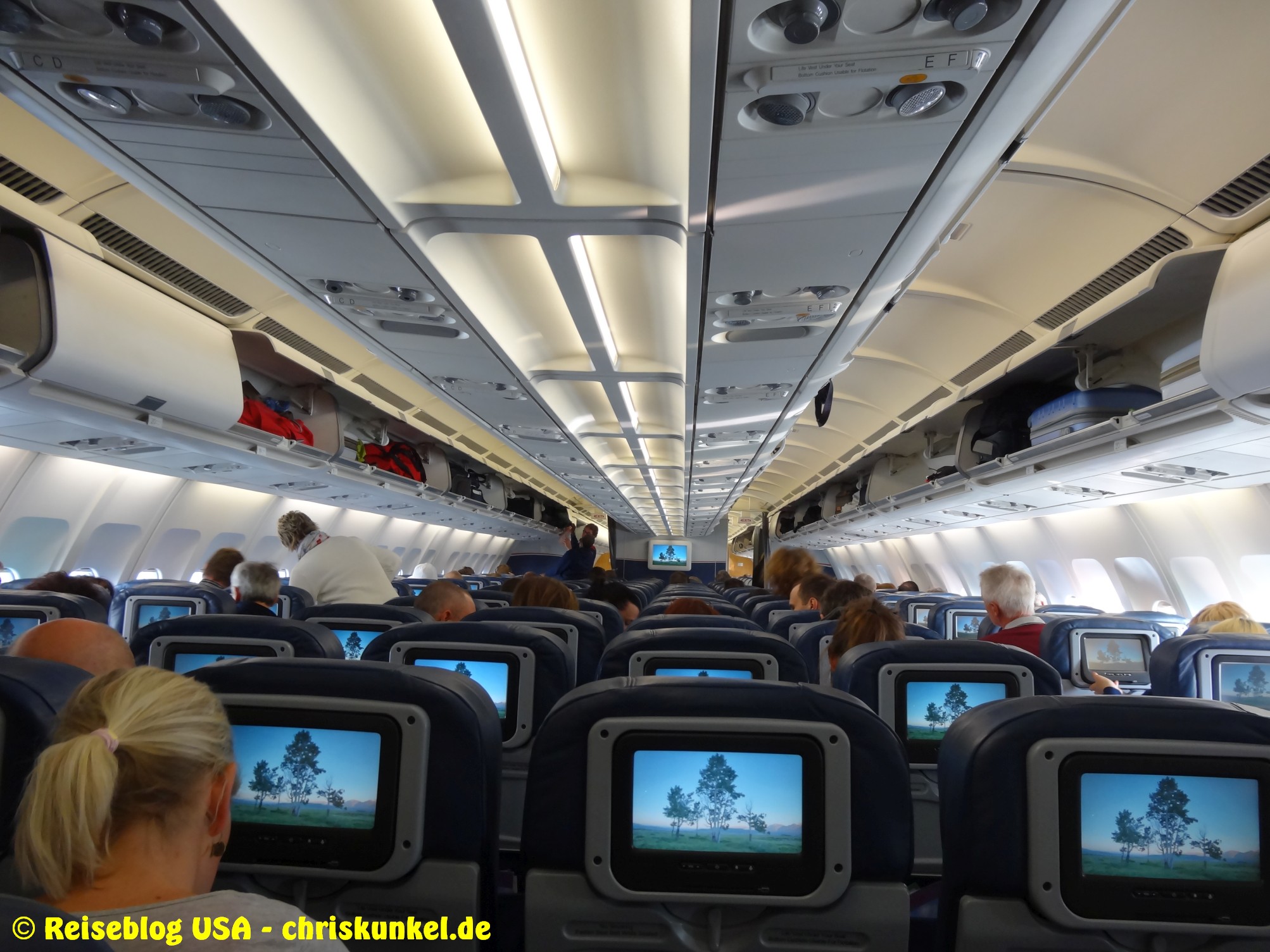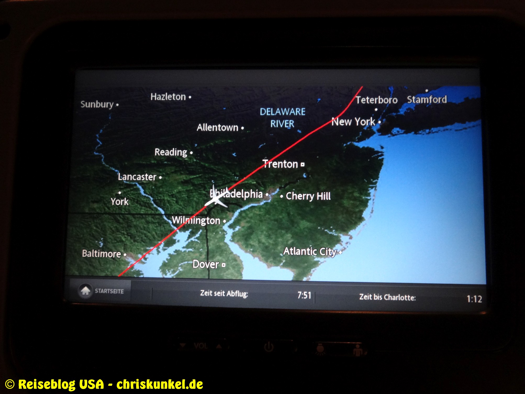 Die Reise begann in der Nacht vom zweiten auf den dritten Mai im dunklen Partybus mit dem Frankfurter Flughafen als Ziel. Von dort ging es mit US Airways über Charlotte nach Las Vegas. Start in Frankfurt war um 9:20 Uhr, entsprechend früh ging es Nachts los. Das zur Feier des Starts ins Flugzeug mitgebrachte Dosenbier hätte uns fast schon direkt eine Strafe von 5000$ eingebracht, die Stewardessen haben aber ein Auge zugedrückt: Wir durften unsere 0,5l Dosen auf ex austrinken. Der Rest der Zeit verging dadurch wie im Flug, weil ständig die Blase drückte. Einer von uns hat es geschafft, sein In-Seat-Entertainment zum Absturz zu bringen. Das waren dann ziemlich langweilige 90 Minuten bis zur Landung in Charlotte, wo wir gegen 19 Uhr Ortszeit ankamen.
