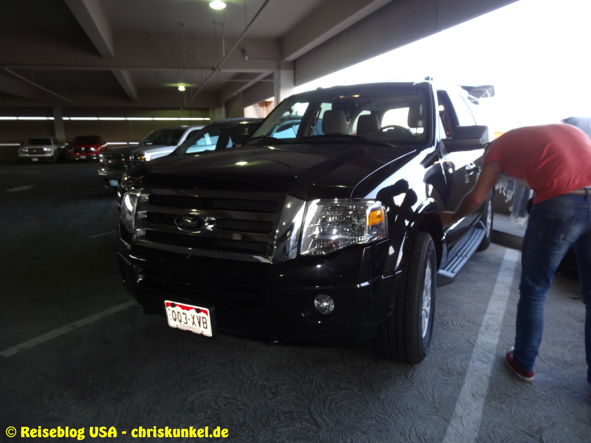 Wir haben dann unseren Mietwagen übernommen und bekamen einen Ford Expedition, der uns die folgenden knapp drei Wochen zuverlässig durch Kalifornien fahren sollte. Da wir alle zum ersten Mal in Las Vegas waren, durfte eine Runde über den Strip natürlich nicht fehlen: Einmal die Straße hoch und wieder runter, dann einen Zwischenstopp bei In&Out-Burger und anschließend ins Hotel – nach einem „33h-Tag“.