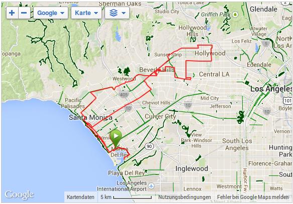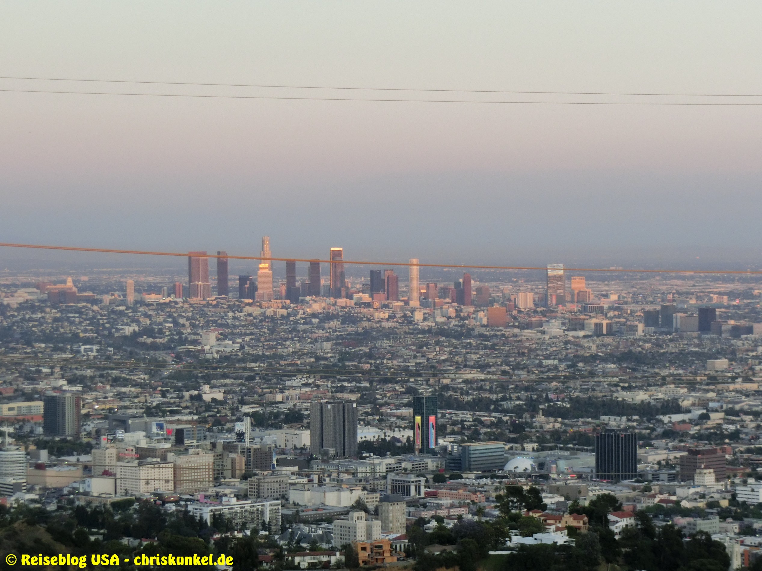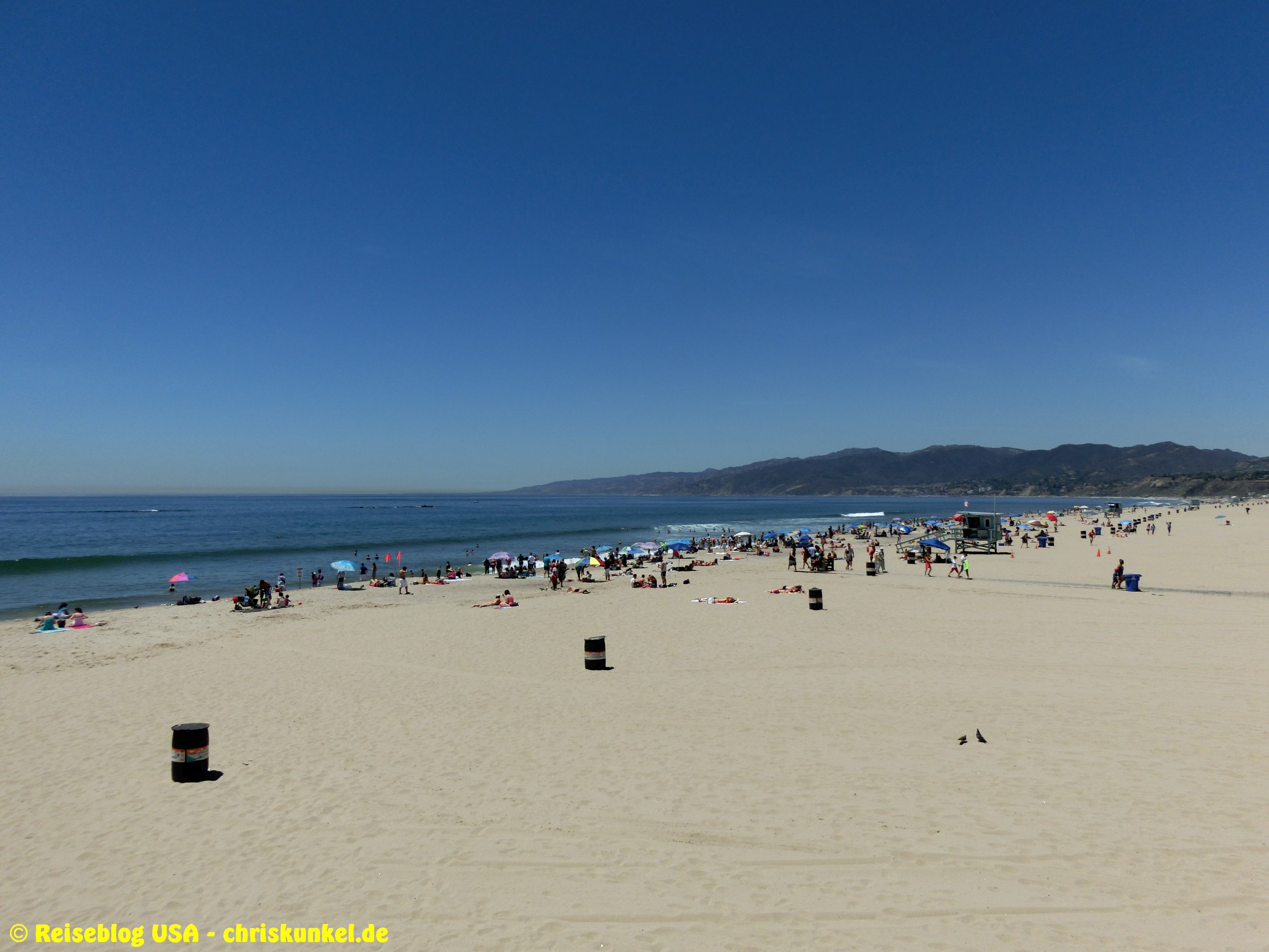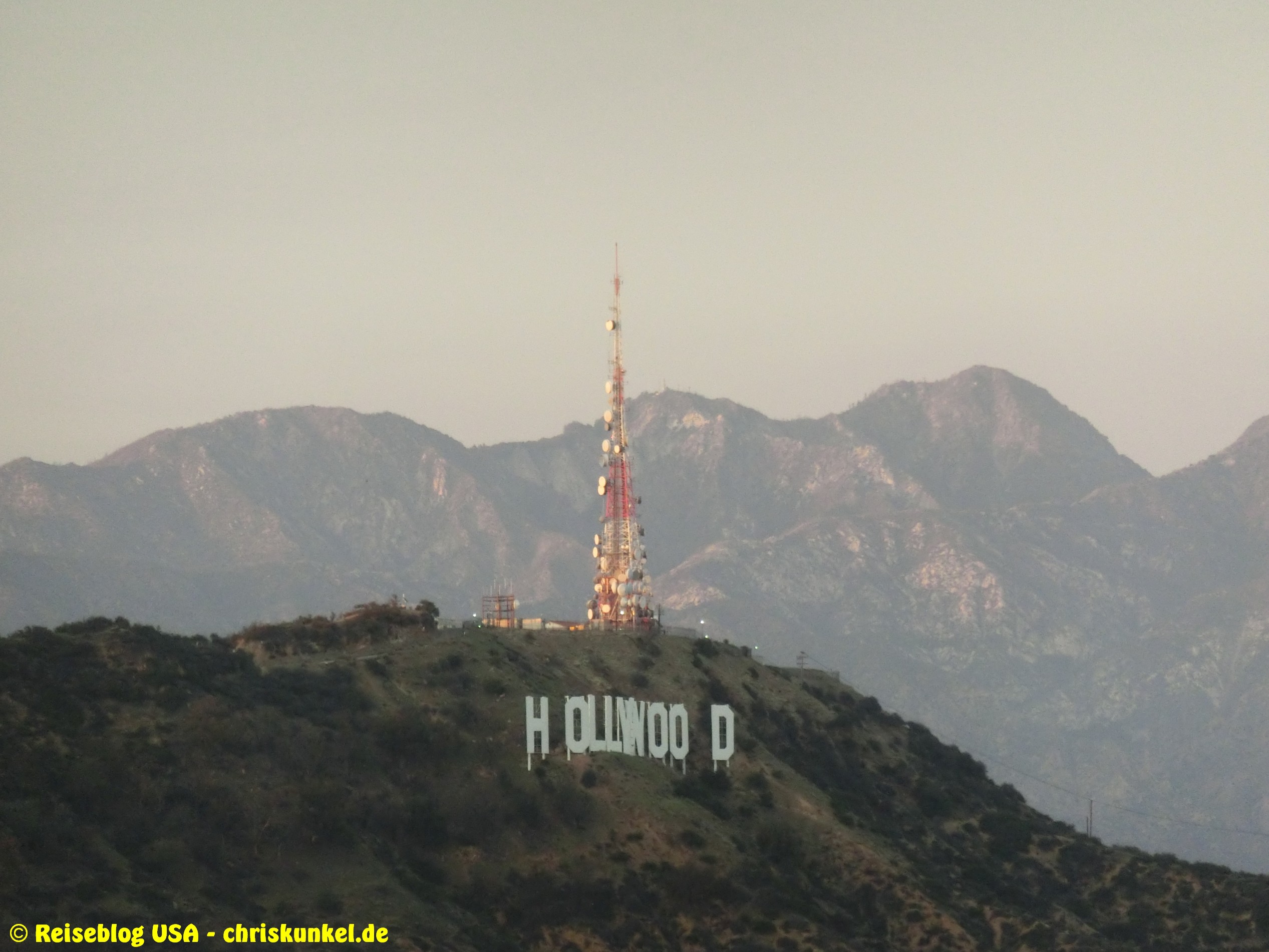 Unsere Fahrt begann Morgens in Richtung Osten. Auf dem Weg nach L.A. spulten wir „unsere“ letzten Kilometer auf dem Highway No. 1 runter. Hier wurde mir zum ersten Mal bewusst, dass unsere Rundtour bald zu Ende sein würde. Die beeindruckendsten Punkte hatten wir schon gesehen, dessen war ich mir sicher. Wir fuhren durch Malibu, dem Wohnort vieler Filmstars und (mittlerweile ehemaligen) Zweitwohnsitz Thomas Gottschalks 😎. Direkt anschließend erreichten wir den Stadtrand von Los Angeles. Die Stadt ist einfach DAS Paradebeispiel einer Supermetropole. Flächenmäßig halb so groß wie das Saarland steckt sie das schönste Bundesland bei der Einwohnerzahl locker in die Tasche. Man kann hier ewig auf der selben Straße geradeaus fahren und ist immer noch in der gleichen Stadt.