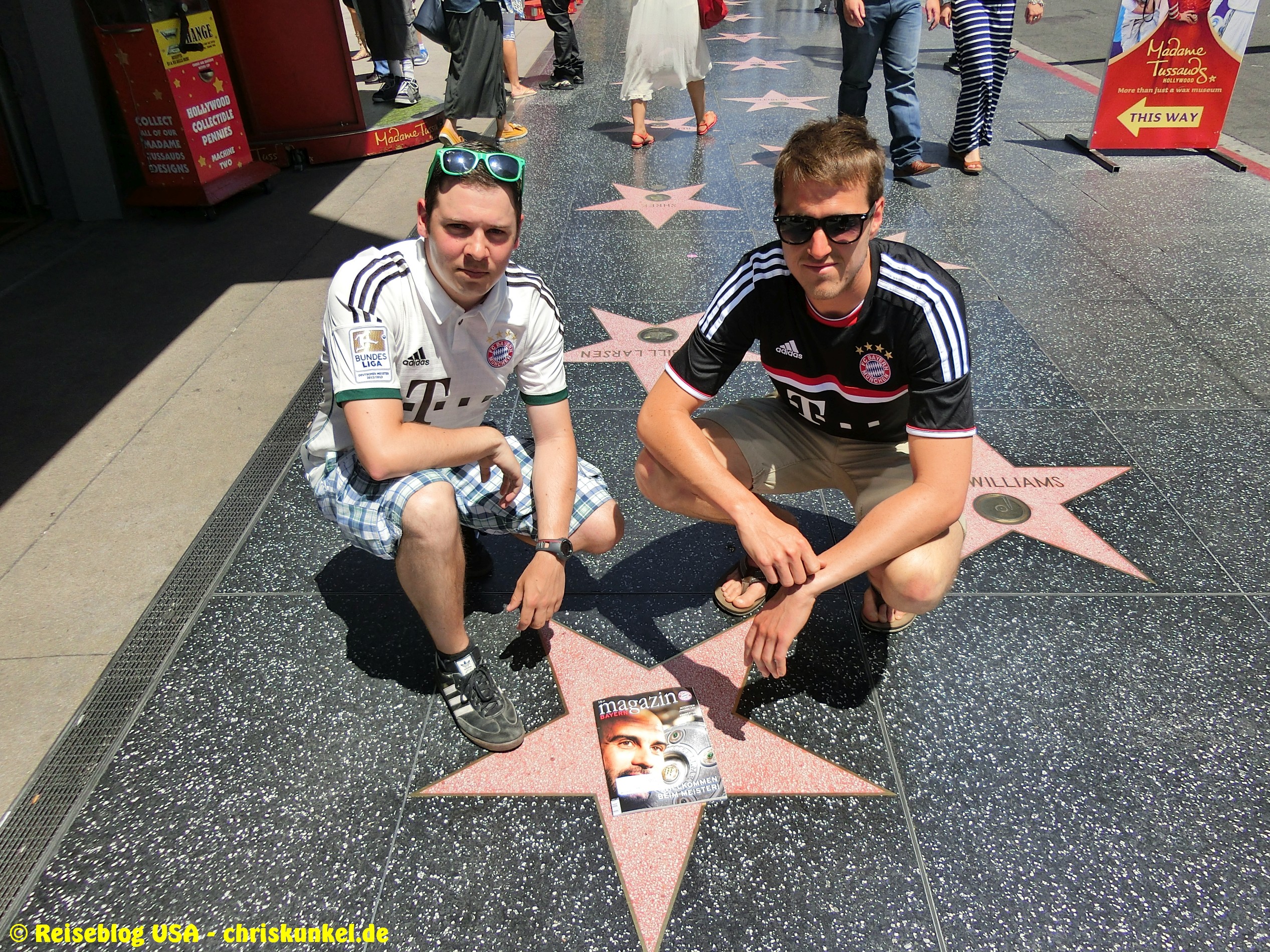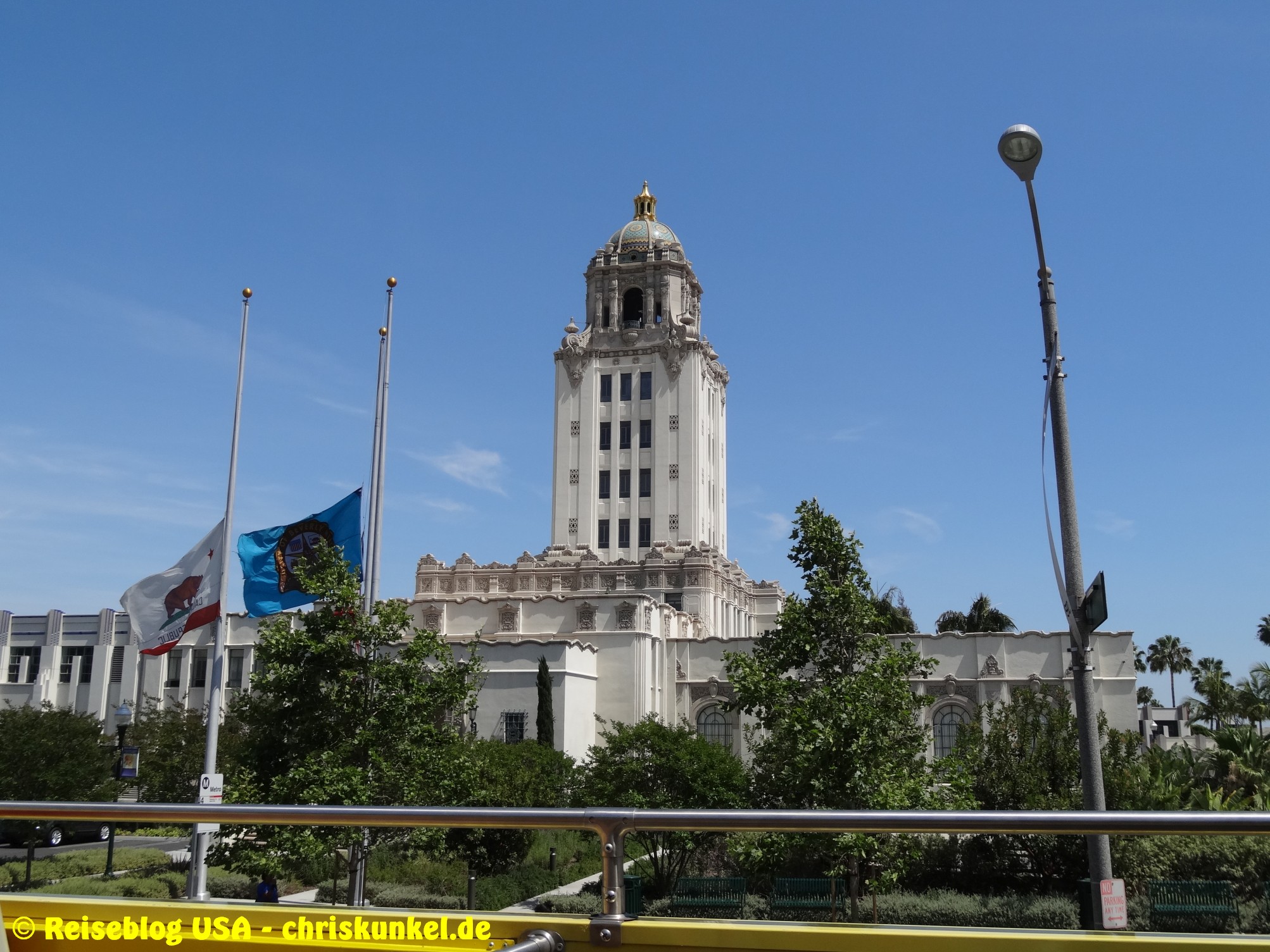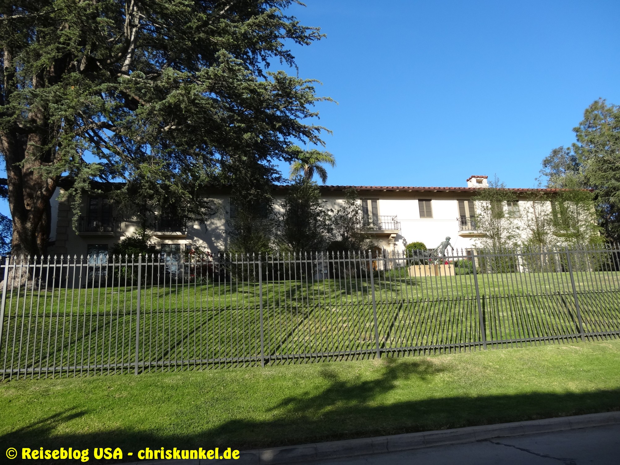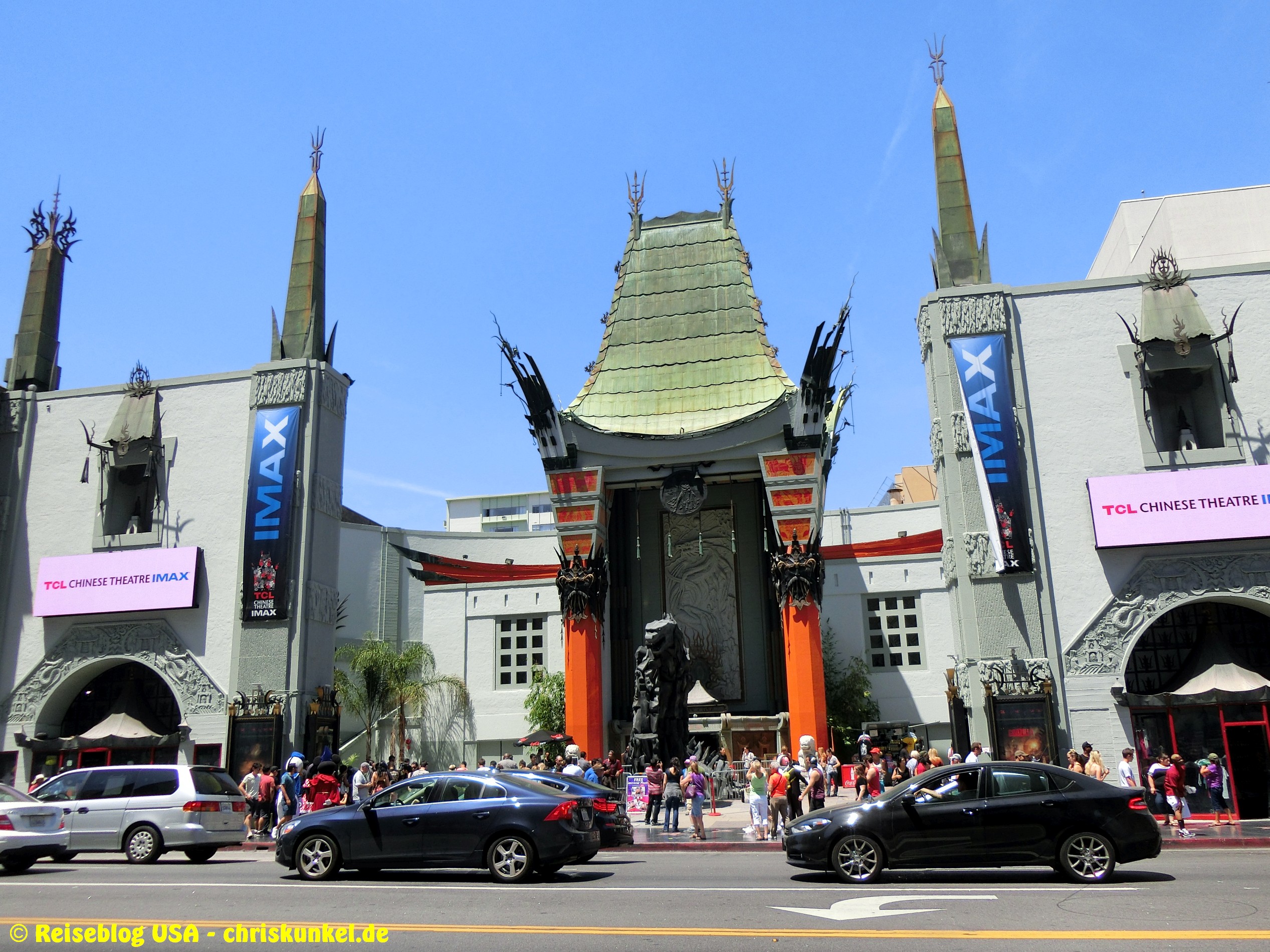 Wir starteten vor der Haustür unseres Hotel und fuhren zunächst durch Venice. Von dort ging es weiter nach Santa Monica und dann in Richtung Downtown. Vorbei am schönen Hauptpolizeirevier durchquerten wir auf unserem Weg nach Hollywood Beverly Hills. Quasi eine eigene Stadt in der Stadt und Wohnort der Reichen und Schönen. Gezeigt hat sich aber niemand. Der Rodeo Drive liegt ebenfalls in Beverly Hills. Dort reiht sich ein Luxusgeschäft an das nächste. Mehr als Durchfahren war dort für uns also nicht drin. Schließlich landeten wir in Hollywood, wo wir aus dem Bus ausstiegen, um über den Walk of Fame zu schlendern. Neben den Sternen im Gehweg stehen hier auch viele Straßenkünstler und Cosplayer. Am Coolsten war sicher Jules Winnfield aus Pulp Fiction 😄. Wir kamen auch am Chinese Theater vorbei, einem berühmten Kino, in dessen Eingangsbereich die Hand und Fußabdrücke vieler Stars aus der Kinobranche aus vergangenen und heutigen Zeiten in Zement verewigt sind.