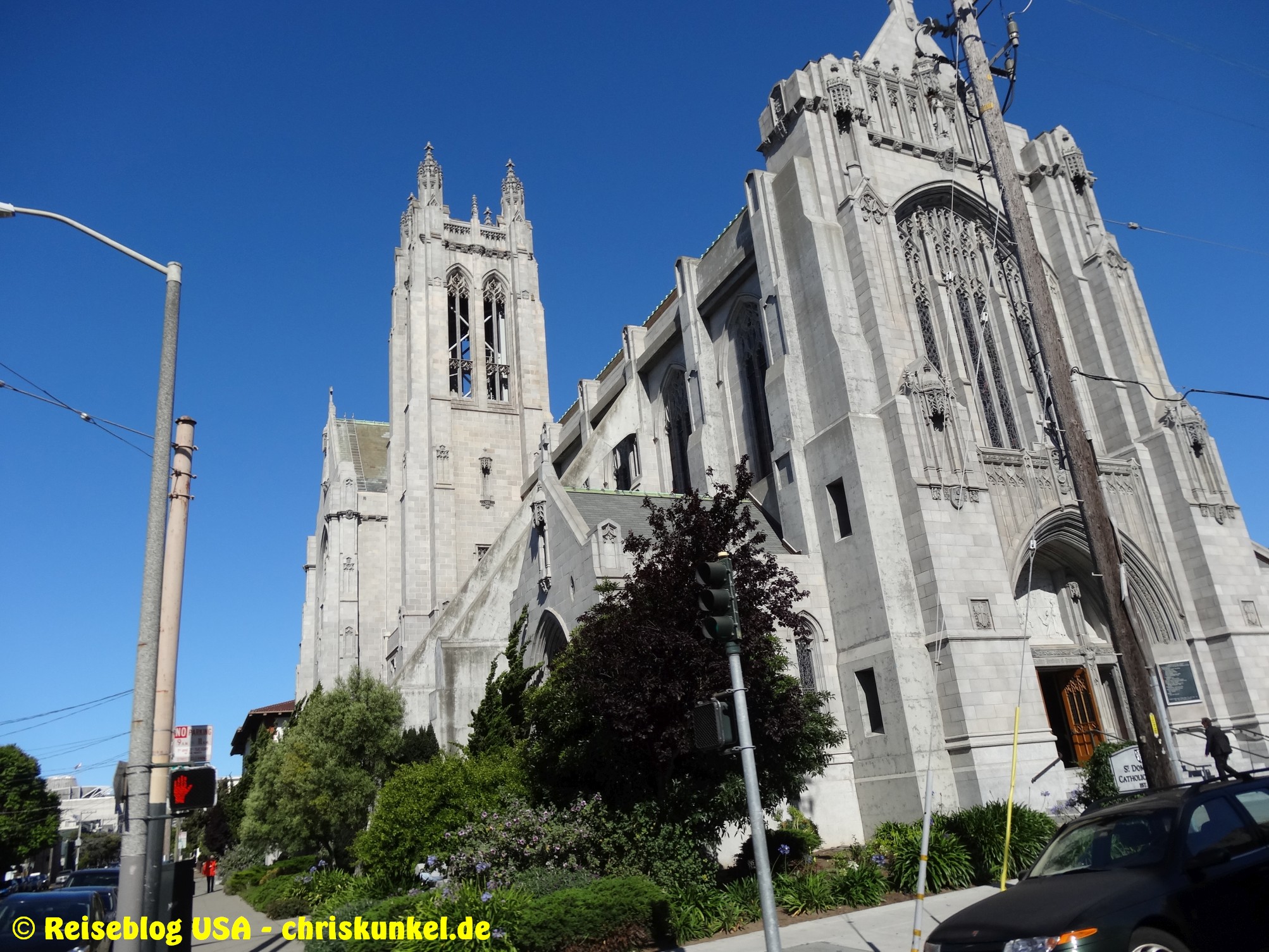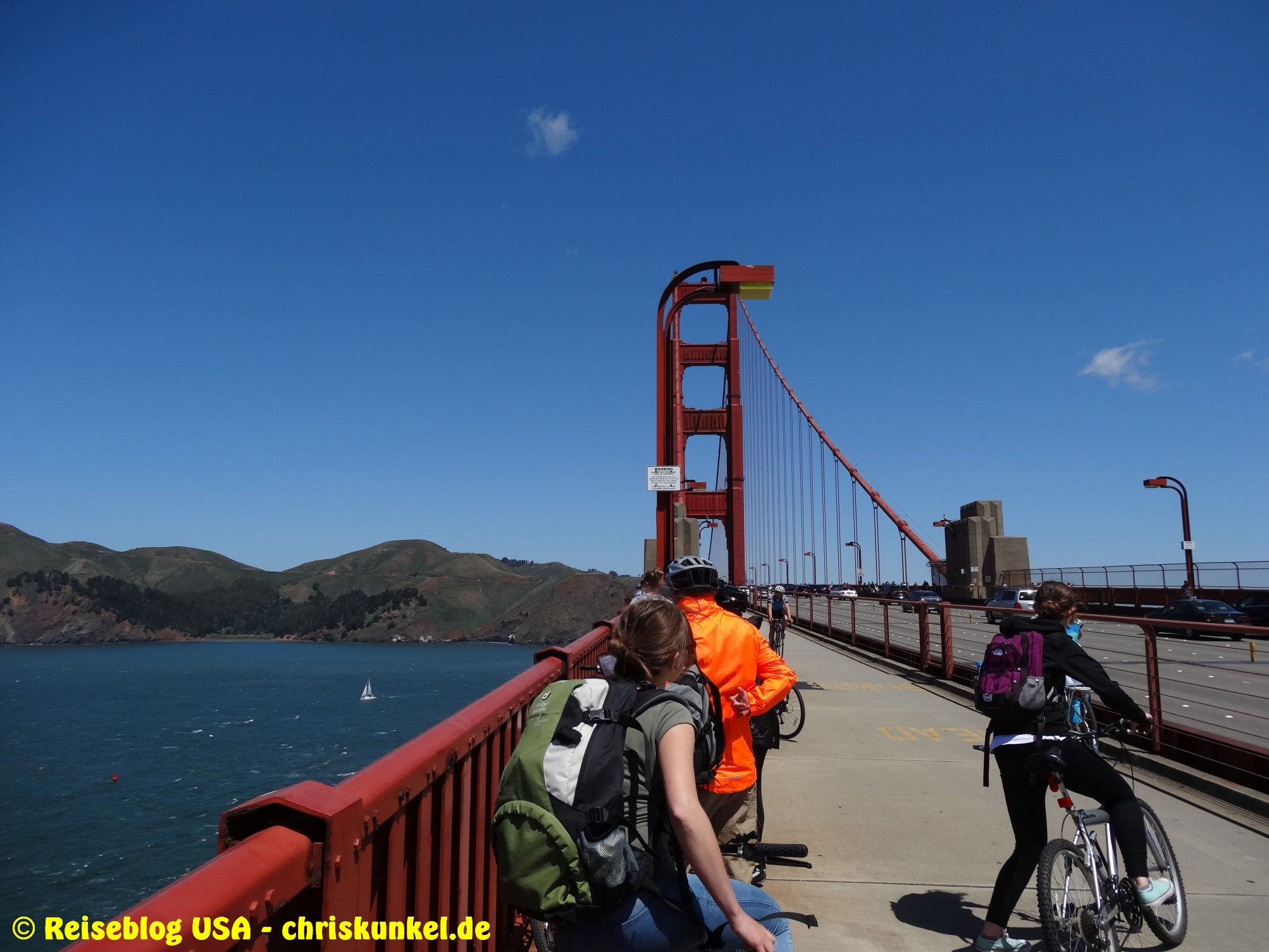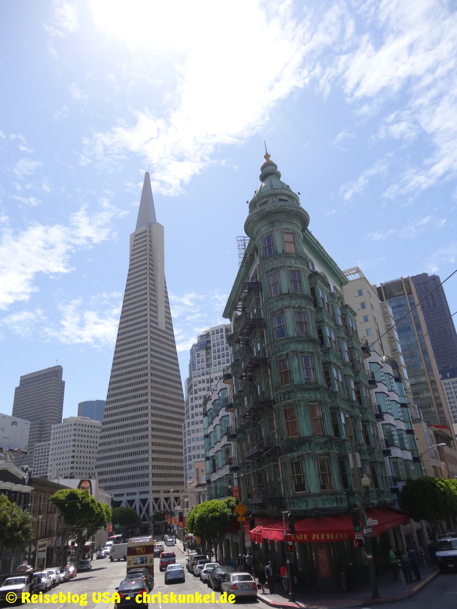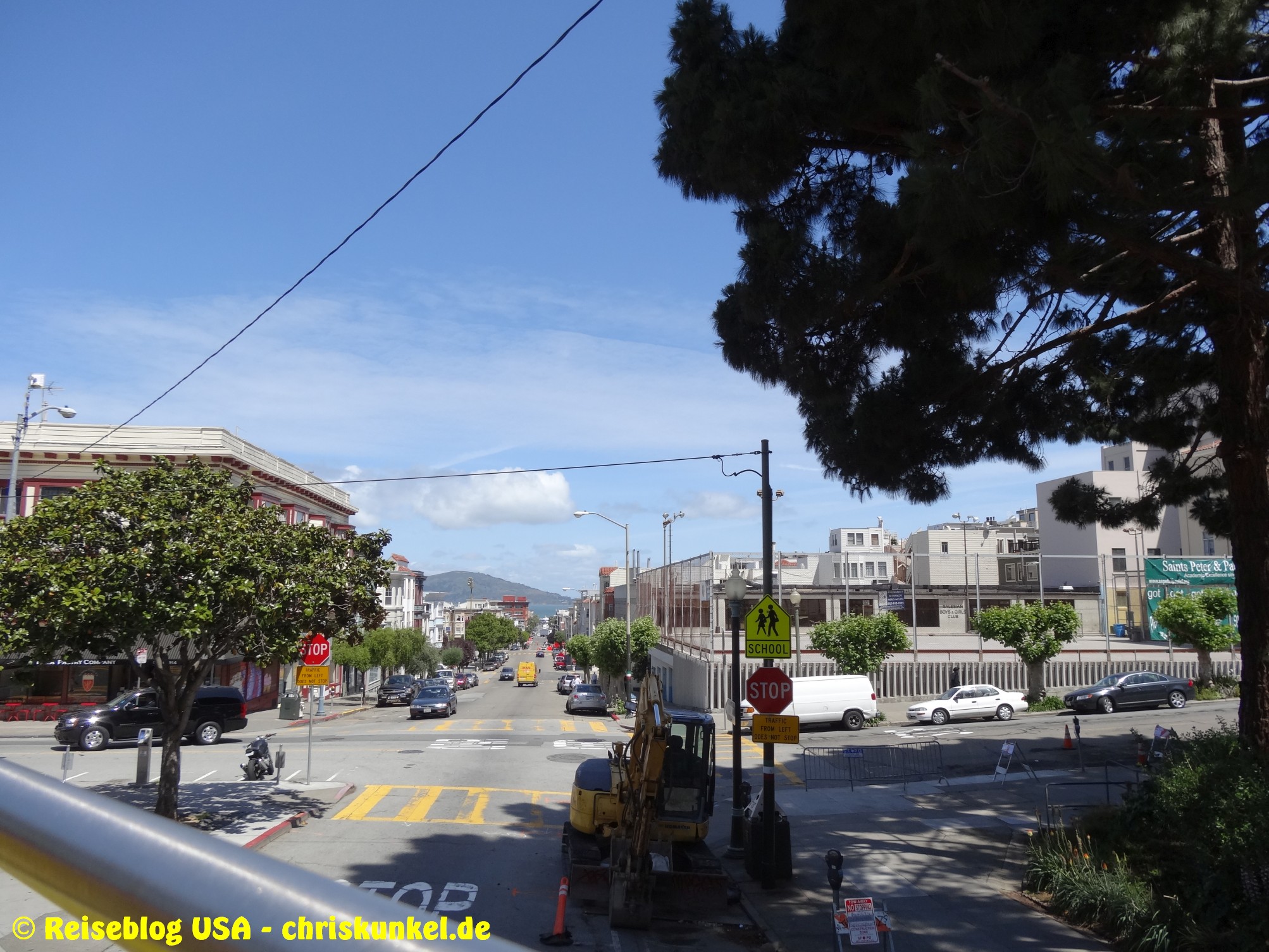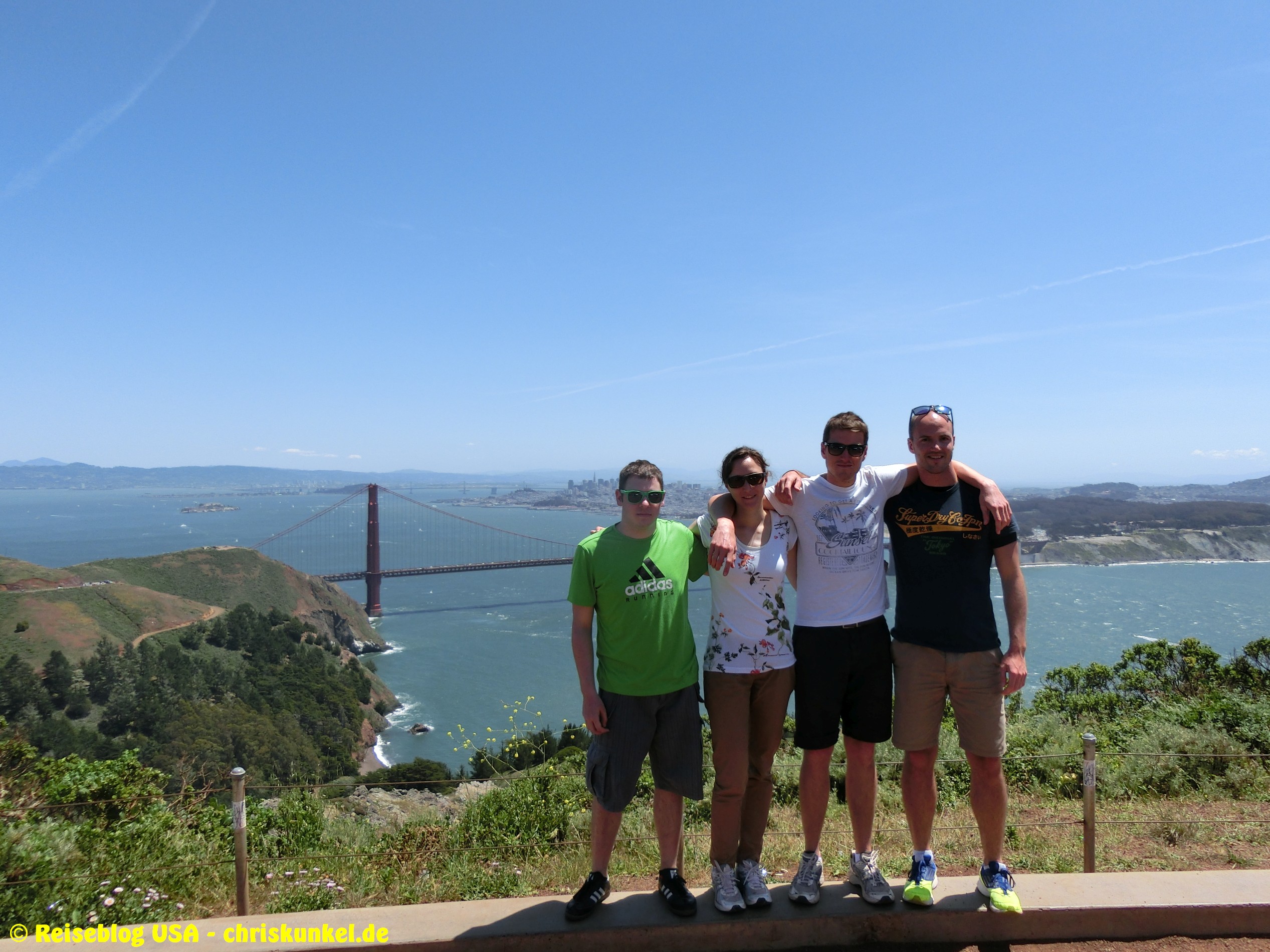 Da wir (natürlich) über die berühmte Golden Gate Bridge in die Stadt hineinfahren wollten, fuhren wir einen kleinen Umweg über die Richmond-San Rafael Brücke, damit wir von Norden aus zur Stadt kamen. Die Richmond-San Rafael Bridge ähnelt äußerlich einer Achterbahn, die beiden Fahrtrichtungen werden auf unterschiedlichen Decks bedient, wir befuhren das untere Deck in westlicher Richtung. So gelangten wir zur Golden Gate Bridge, die wir überquerten und unser Hotel, das Travelodge at the Presidio, ansteuerten. Das Hotel liegt am westlichen Ende der Lombard Street. Das ist die aus vielen Filmen bekannte Straße, die sich am Ostende kurvenreich den Berg hinunterschlängelt.